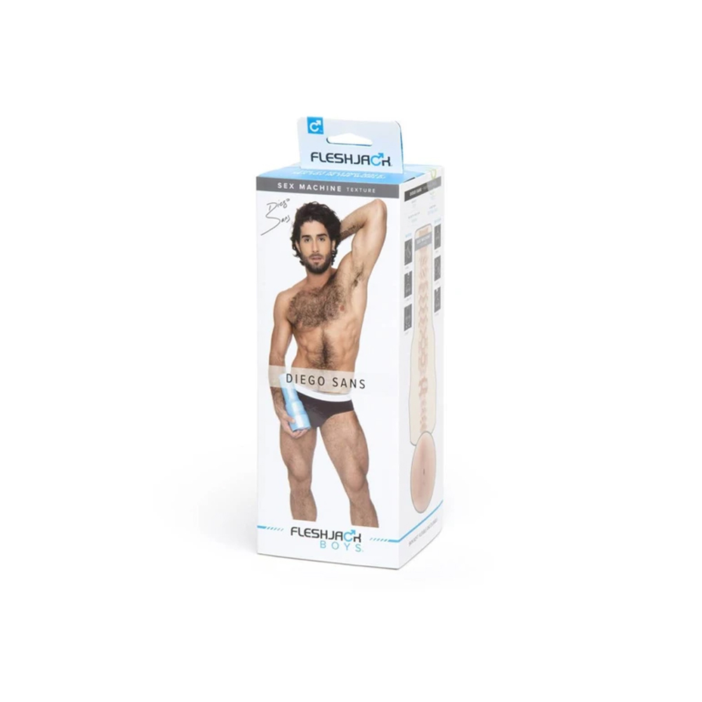 Brace yourself for a passionate Brazilian adventure, as this hairy sex machine lets you go where very few men have gone before! Molded from the actor himself! Includes Diego Sans Fleshjack butt sleeve with Diego’s signature Sex Machine texture and a powder blue Fleshjack case.